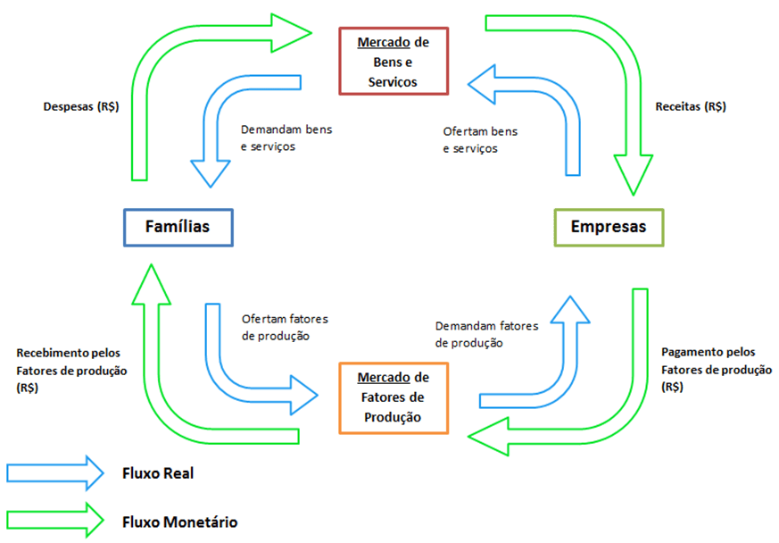 Em seguida, os Manuais apresentam o fluxo circular da renda, para mostrar que a economia depende de um fluxo de trocas, onde, de um lado, estão as famílias e, de outro, as firmas. Tudo se passa como se as empresas não tivessem donos, pois no universo das famílias estão os donos dos fatores de produção, que vivem da venda de seus serviços para firmas imaginárias, que produzem bens e serviços para os donos dos meios de produção (trabalho, capital e terra), isto é, para as famílias. Nem uma palavra sobre como os possuidores da terra adquiriam suas propriedades, nem como os donos do capital formaram seu patrimônio.